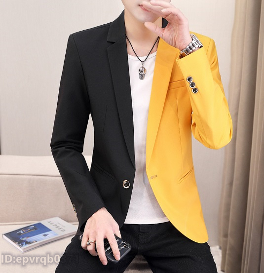- ブレザー 新入荷☆テーラードジャケット 折襟 スリム 切替配色 メンズ カジュアルスーツ 紳士 トップス サイズ選択可 2色選ぶ/イエロー/L