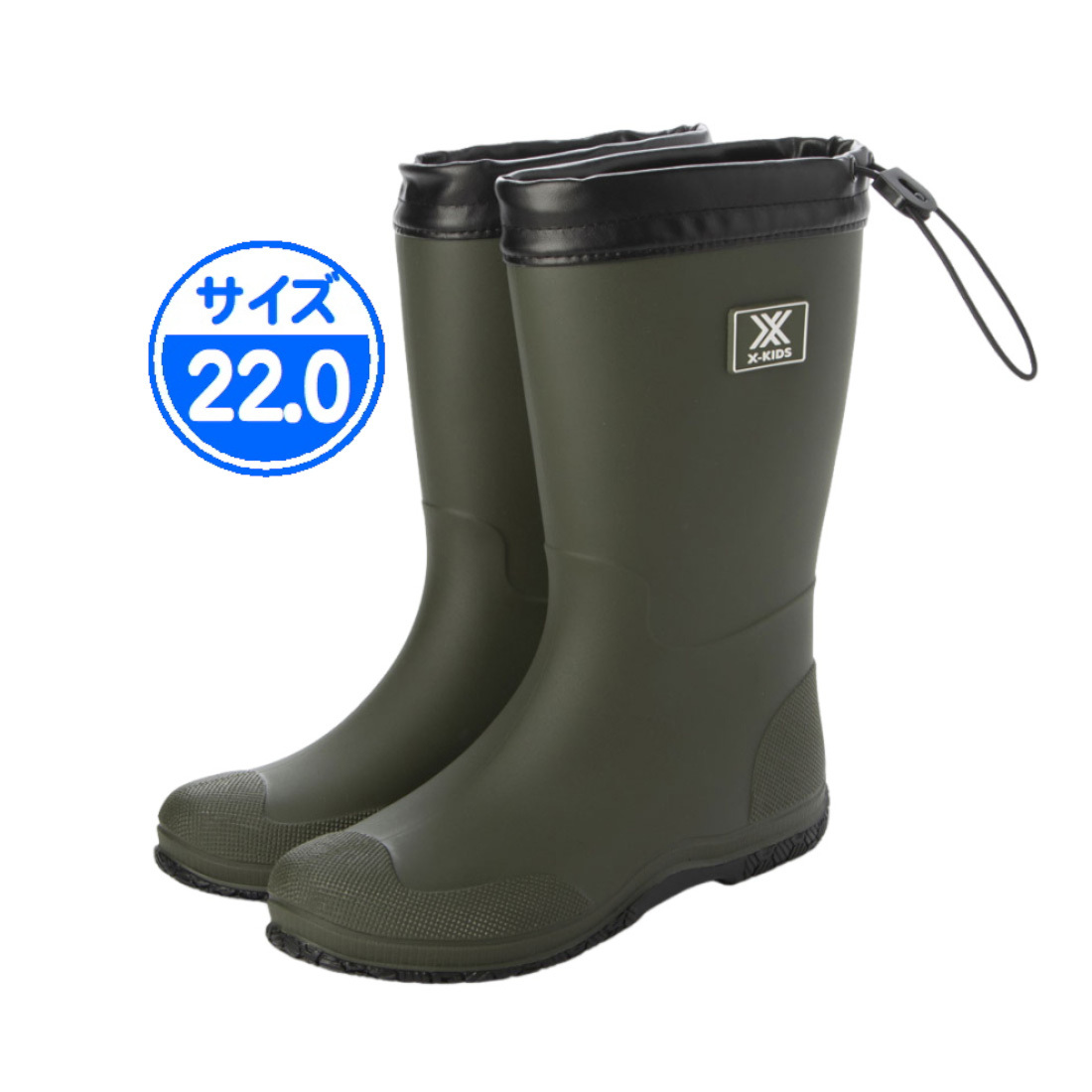 - 【新品 未使用】24065 子供用 折り畳み長靴 カーキ 22.0cm