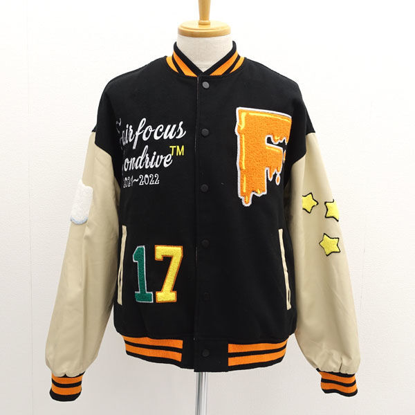 > ★ フェアフォーカス スタジャン 合皮 ワッペン 刺繍 ブラック サイズXL (0220502987)
