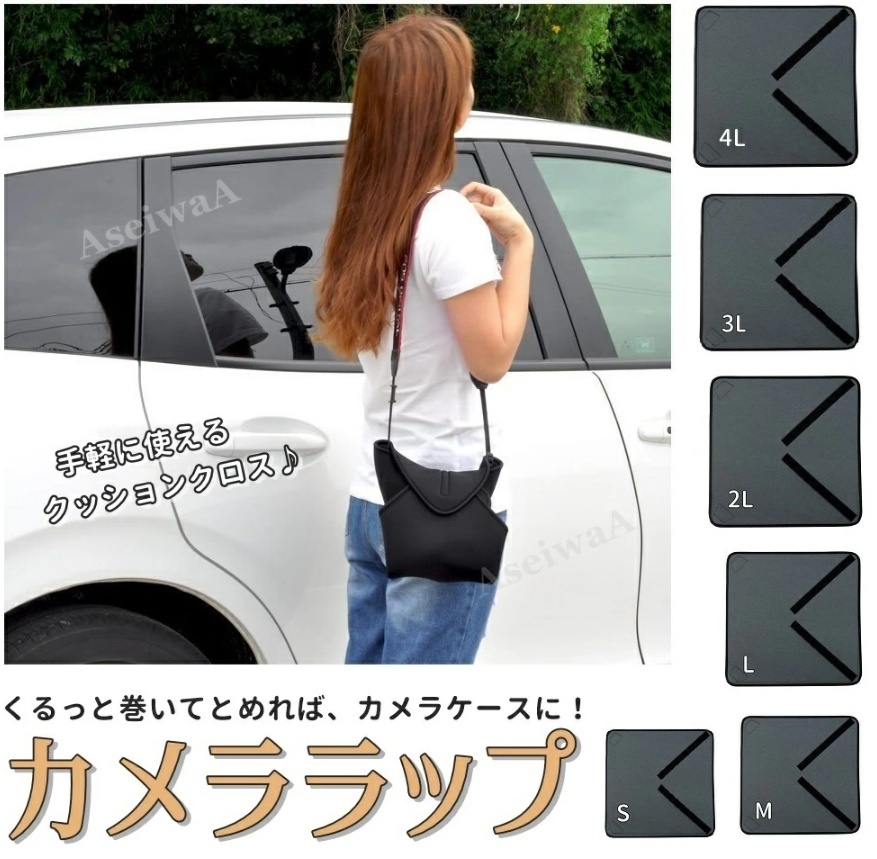 - 送料無料 カメララップ 3L サイズ カメラバッグ カメラクッション 持ち歩き便利 コンパクト ラップクッション 耐衝撃 耐水 傷防止
