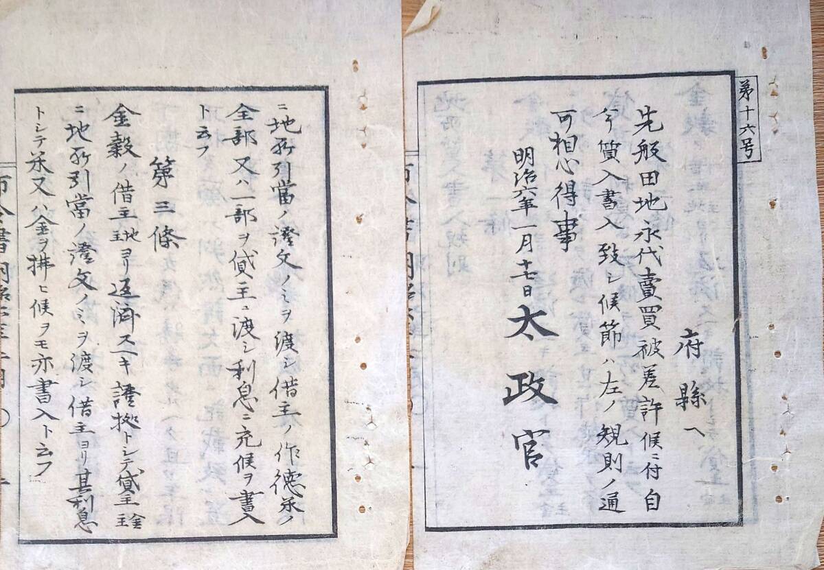 - f24101824〇明治布告布達 土地英題売買指許 地所質入書入規則 敦賀県 明治6年〇和本古書古文書