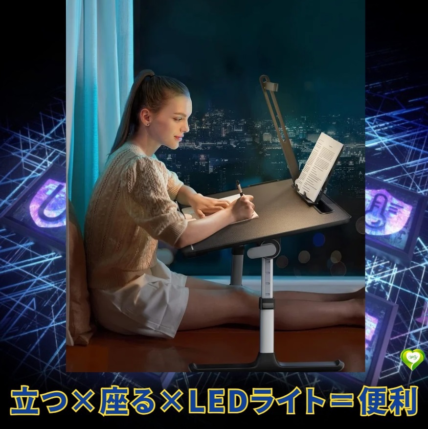 - 【光る!畳める!多機能卓】パソコンデスク ラップデスク 2色展開 折りたたみテーブル LEDライト付き ベッドテーブル 勉強 快適 便利 軽量