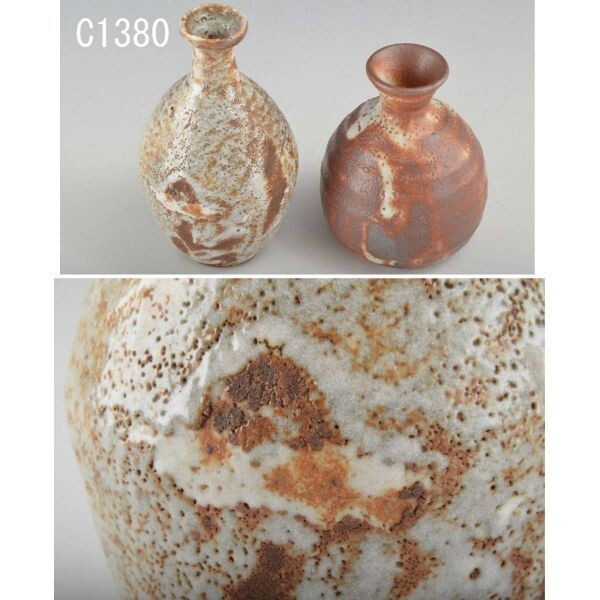 - C01380 志野徳利2点 作家物:本物保証 送料無料