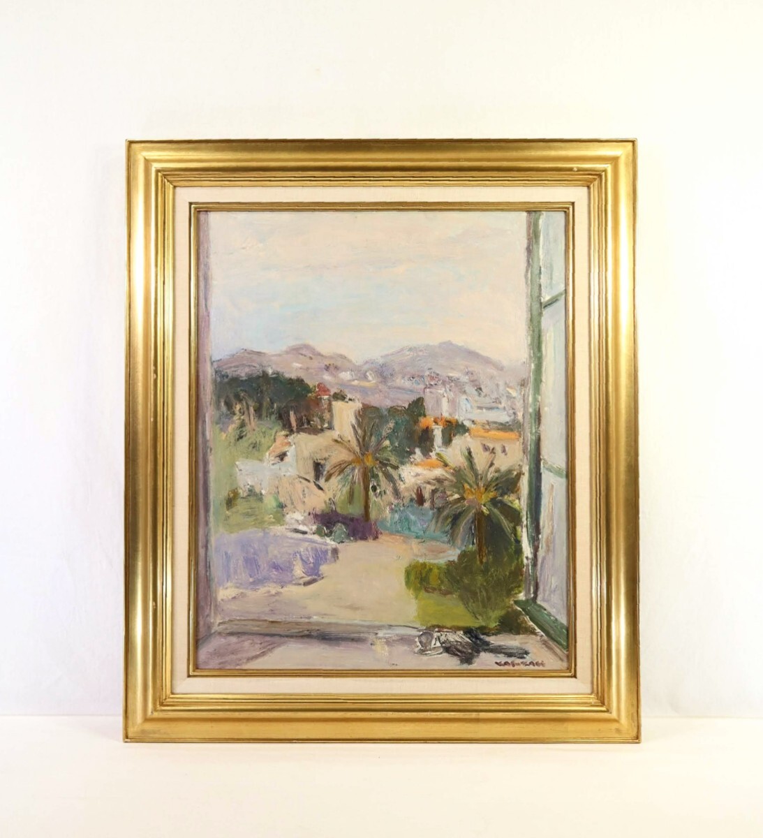 - 真作 春日部洋 1982年油彩「カンヌの窓」画寸 F15 東京都出身 サロン・ドートンヌ会員 仏画壇で活躍 柔らかな色彩と情趣ある画情 9845
