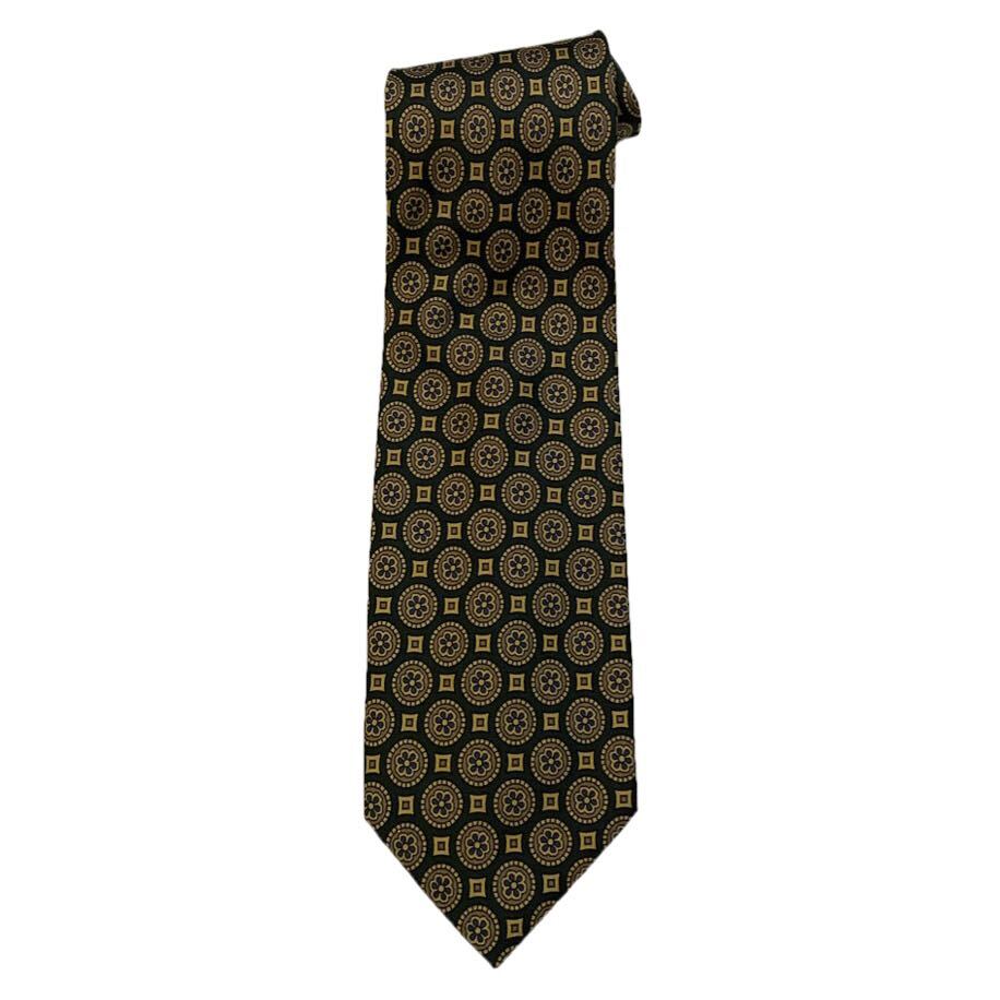 - MADE IN ITALY製 a.testoni 総柄シルクネクタイ ダークグリーン×キャメル テストーニ アメデオテストーニ イタリア製