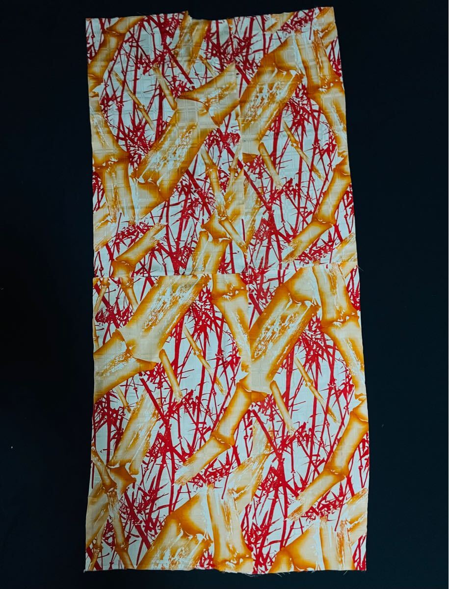 - アンティーク正絹赤竹柄ハギレ 135cmx64cm