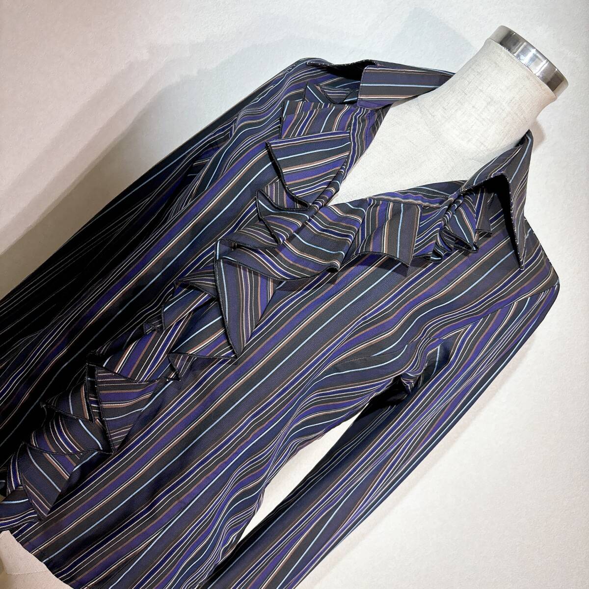 - C056■ナラカミーチェ★黒紫&マルチストライプ★フリルブラウス■Ⅰ