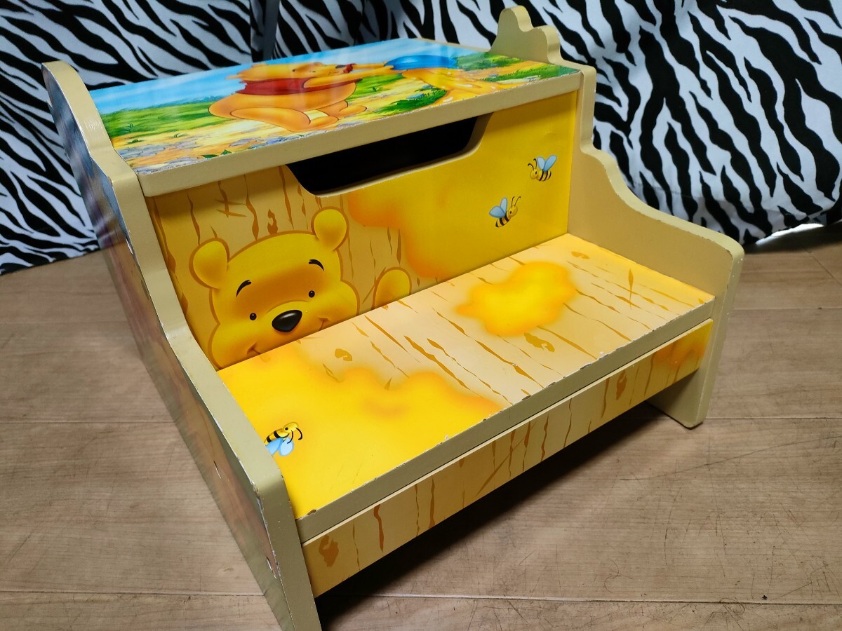 - 希少!くまのプーさん 木製踏み台収納BOX 台座 おすわりイス Disney
