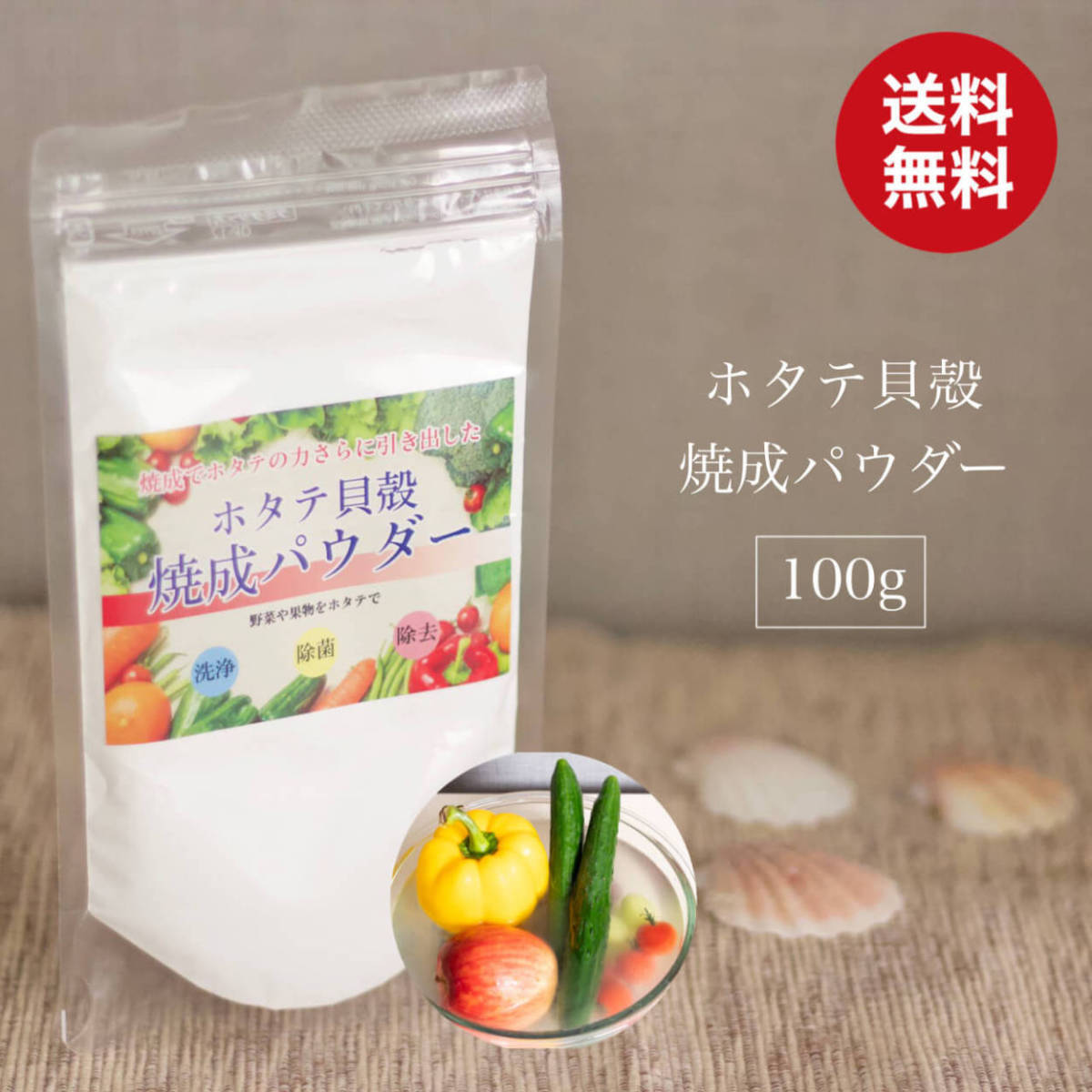- 青森産 ホタテ貝殻焼成パウダー 100g ホタテ ほたて 貝殻 帆立 強アルカリ水 野菜 果物 洗い 粉 洗濯 洗剤 洗浄