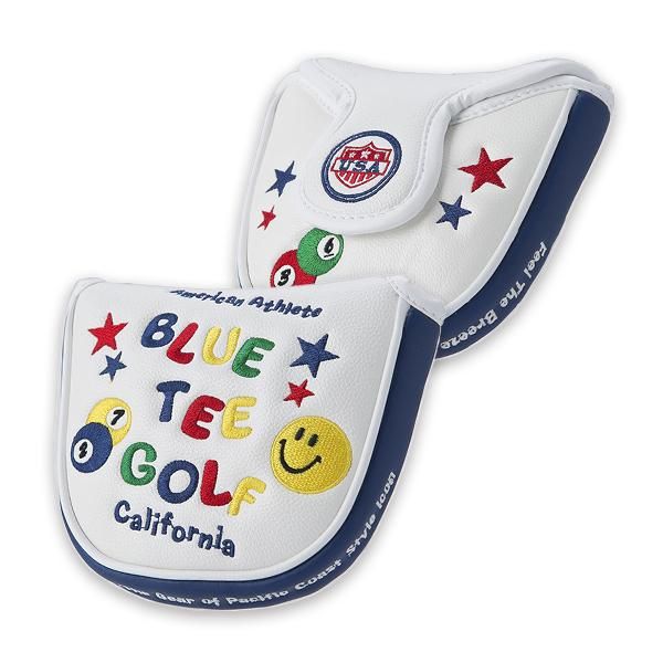 - △2-MPT【ホワイト・ネイビー】ブルーティーゴルフ【スマイル&ピンボール】マレット型パターカバー BLUE TEE PC-001 送料無料