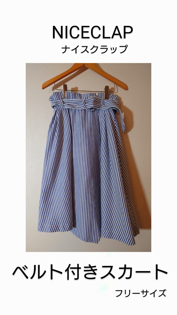 - NICE CLAUP ナイスクラップ ベルト付きフレアスカート フレアスカート ロングスカート ミディスカート フリーサイズ