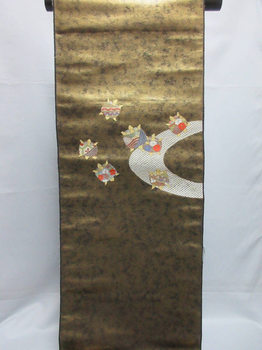 > ☆【訳あり品】 未仕立 正絹 焼箔に刺繍 九寸名古屋帯 04518