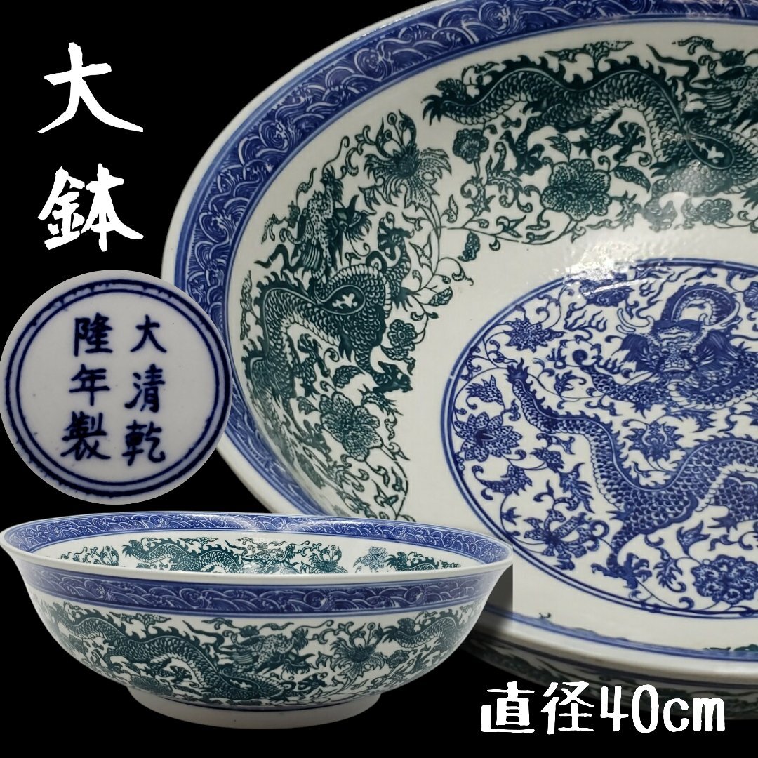 - 大鉢 中国古玩 大清乾隆年製 五爪の龍紋 大皿 直径約40cm 中国美術 古美術 骨董品 アンティーク 小道具 古道具 インテリア【120i4341】