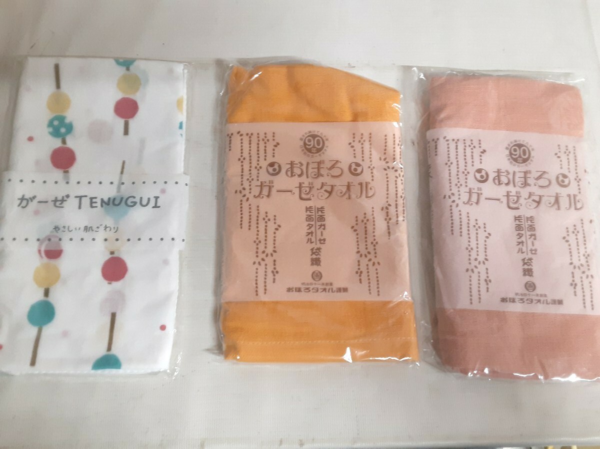 > ☆おぼろガーゼタオル☆ピンク オレンジ 白☆がーぜTENUGUI☆日本アトピー協会推奨品☆未使用☆綿100パーセントぼ ガーゼ手拭い☆
