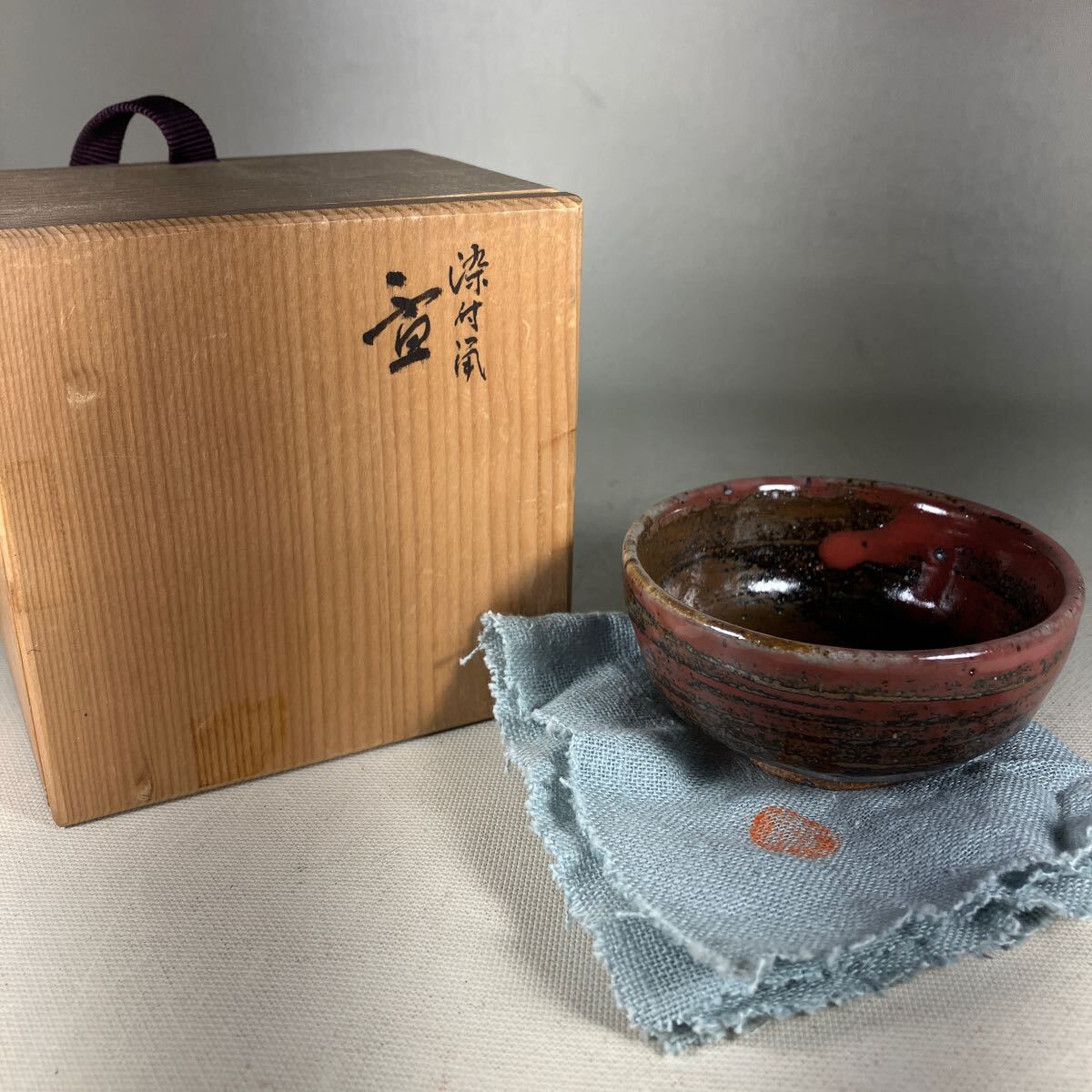 - 嶋田壽樂造(九谷寿楽)染付鼠 盃 共箱 共布 酒器 ぐい呑