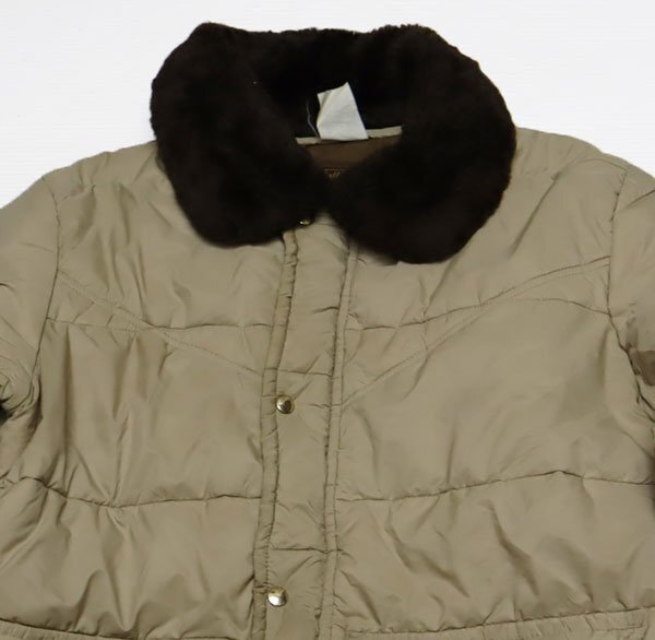 > NJ99ウォールズWALLSアメリカ古着アメリカ製ナイロンジャケット80’S90’Sビンテージ中綿入りLアクリルボア襟ベージュ系アウトドアジャケッ