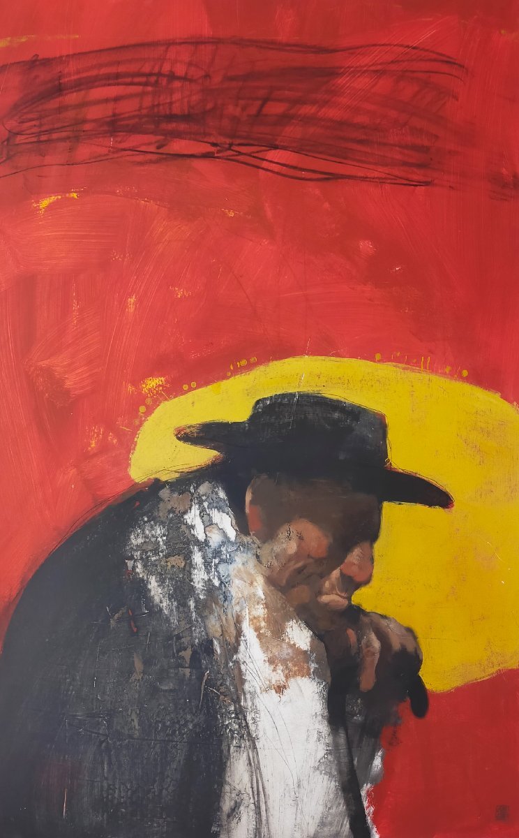 - 【宇美】真作 蔡國華 中国人画家 旅人 2002年 アクリル 直筆サイン /ダイナミックな筆致で描かれた肖像画は天下一品です 送料無料