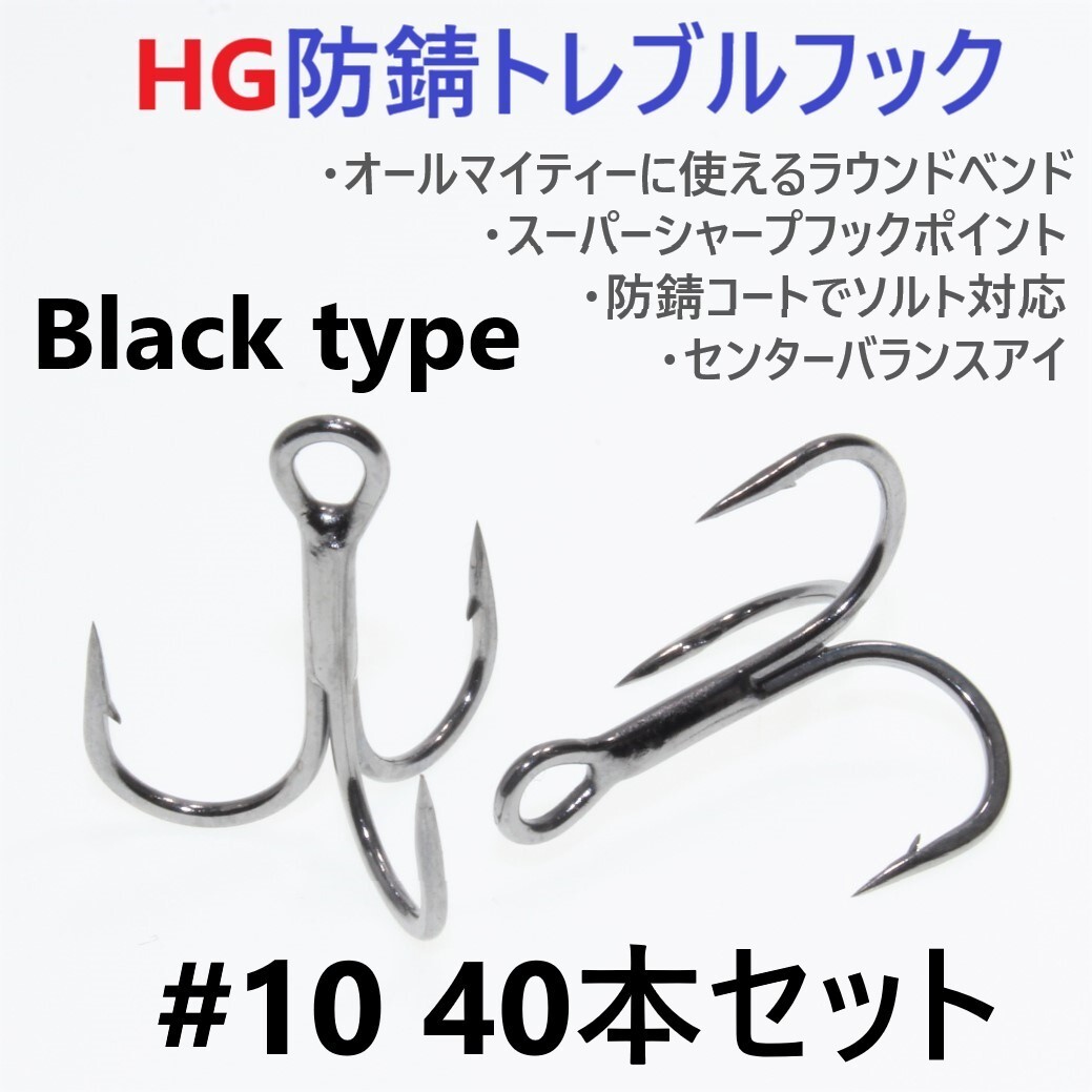 > 【送料150円】ハイグレード防錆トレブルフック ブラック #10 40本セット 高品質ルアーフック がまかつトレブル13好きに
