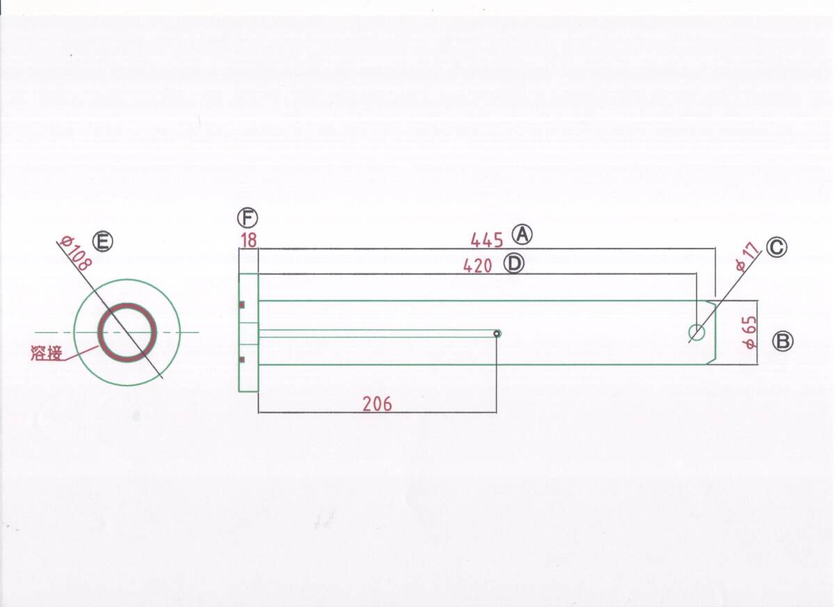 - NO 1912 Φ65用 溶接ツバ下445mm グリス穴付きバケットピン 1本