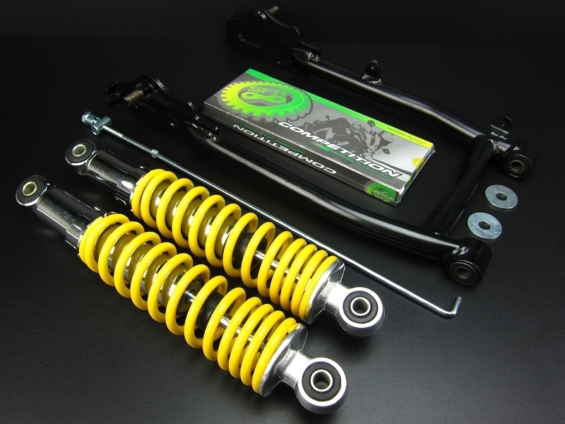 - 10cmロングスイングアーム/ブラック&280mmリアショック/イエロー&チェーン モンキー/ゴリラ