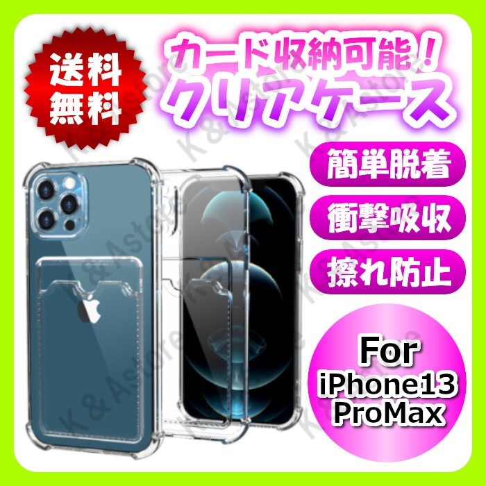 > iPhone13promax スマホ ソフトケース カバー クリア 透明 カード収納 カード入れ ポケット付き