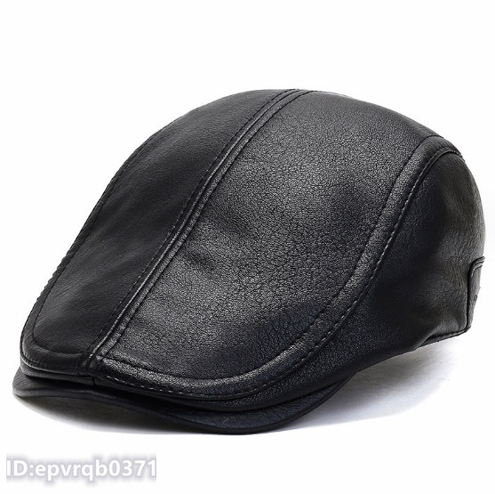 - 革帽子 メンズ キャスケット 紳士 レザーキャップ ゴルフキャップ 男性 アウトドア 秋冬 フリーサイズ /黒