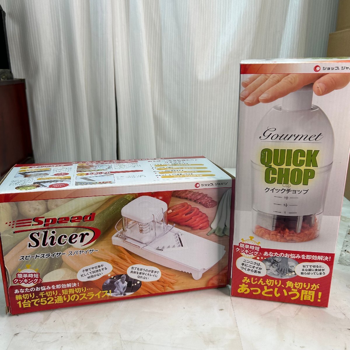 > &M& 【新品】 ショップジャパン スピードスライサー クイックチョップ 2点セット 調理器具 簡単 スバヤイサー 時短 料理 カット &H-241106