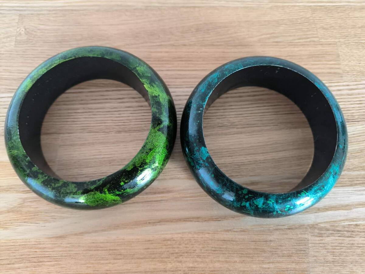 - 美品 天然木で作ったグリーン系のお洒落なブレスレット★送料込★