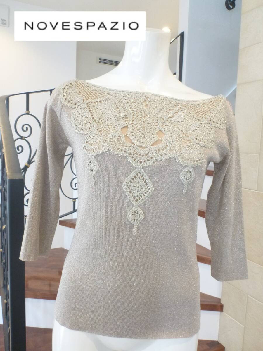 > 2.5万 超美品 NOVESPAZIO ノーベスパジオ ★ゴールドベージュ バックセクシー 7分袖 セーター 38 M相当