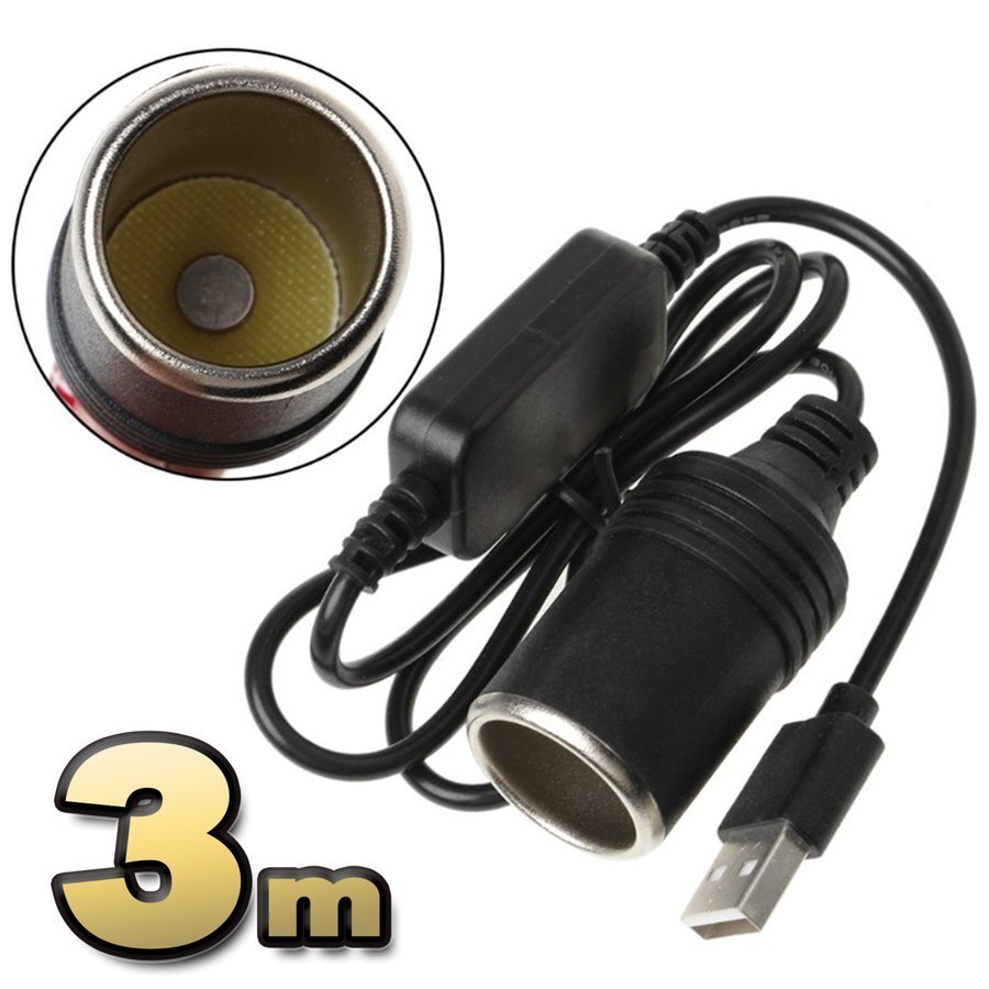 - USB ポートから シガーライターソケットに 変換 パソコンのUSBからも使用可能 トラック 12v対応 変換電源 【3m】