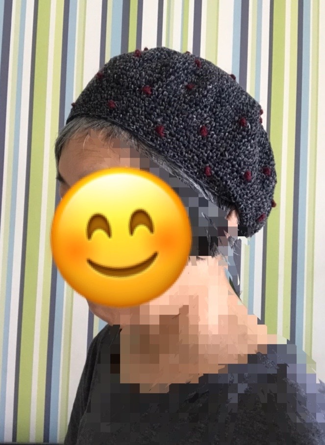 > 即決/手編み ハンドメイド 軽くて通気性よい ウールシルク★ドット模様 ベレー グレーと濃紺 ニット帽 帽子/医療ケア 薄毛白髪脱毛症隠し