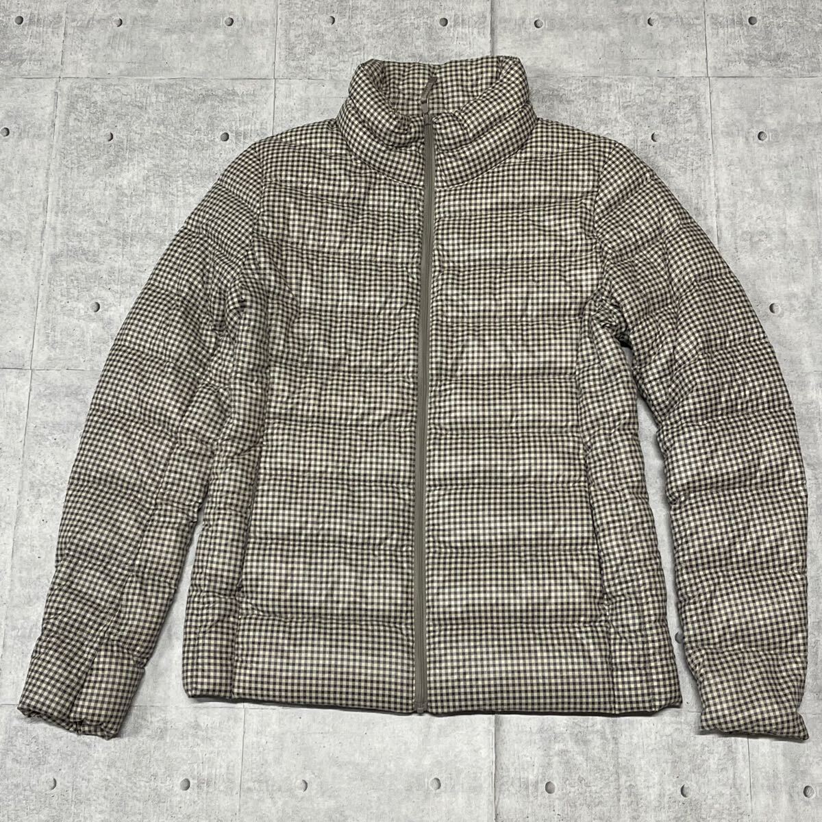 > 美品 UNIQLO ライト ダウンジャケット ギンガムチェック ユニクロ 防寒 保温 ジッパー付き 4ポケット 内ポケット2つ 早4063