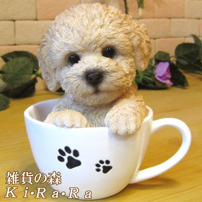 - 置物 動物 可愛い 犬の置物 プードル ティーカップドッグ Aタイプ リアルな子いぬのフィギュア イヌ オブジェ ガーデニング