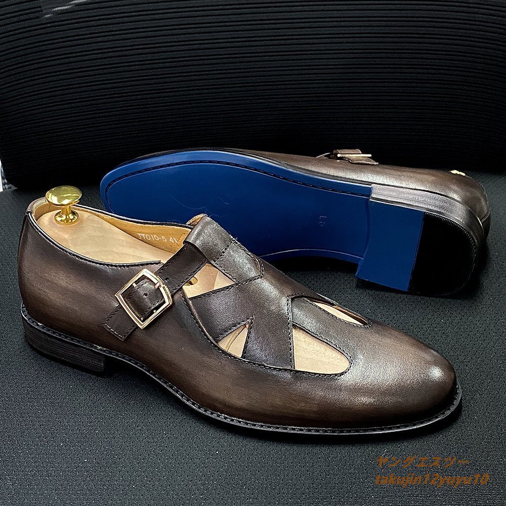 > 定価7万◆ビジネスシューズ 夏新品 サンダル メンズ 紳士靴 本革 レザーシューズ 職人手作り 通気性 牛革 皮靴 三色選択 珈琲色 28.0cm