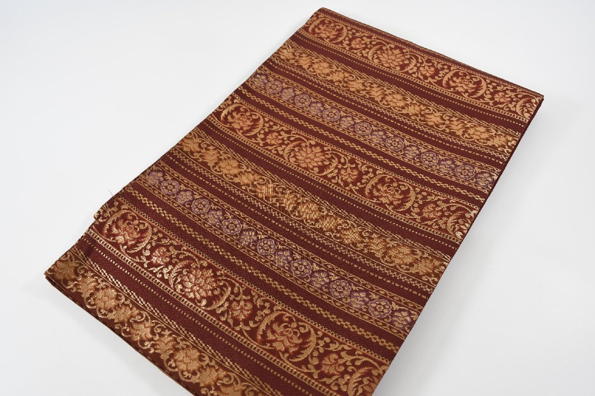 - 袋名古屋帯 六通柄 縞模様 唐花文様 帯丈363cm ★着物屋 ne-12701 桜庭呉服店