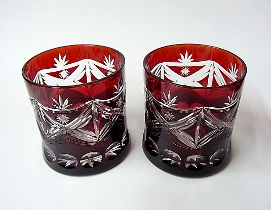 - 【P0802】未使用 赤被せ ガラス 切子タンブラー 2点