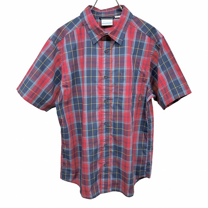 > コロンビア Columbia シャツ チェック 胸ポケット 半袖 袖に刺繍 OMNI-WICK ショートスリーブ ポリ×綿 M 赤×青×黄 メンズ
