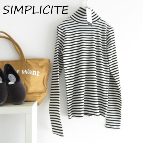 > 送料込 匿名配送 新品 SIMPLICITE シンプリシテェ ハイネック ボーダーカットソー F