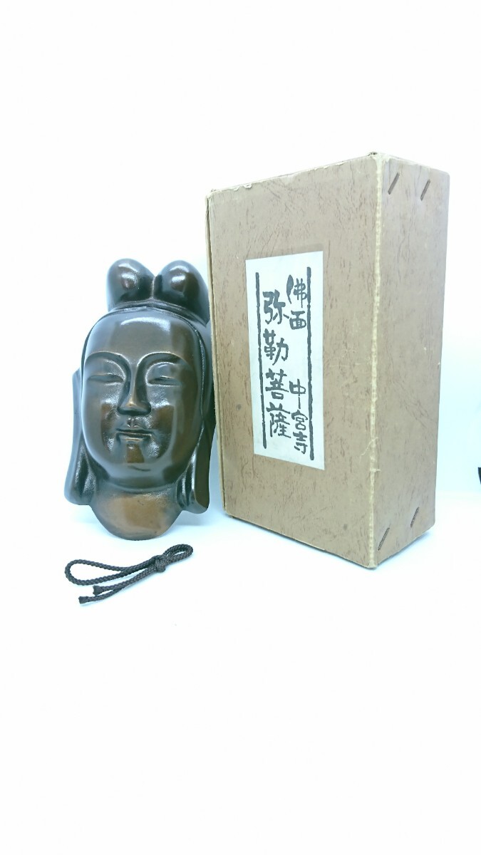 - お面 弥勒菩薩 鉄製 ミロク 箱付き 紐付き 神 飾り オブジェ コレクション 工芸品