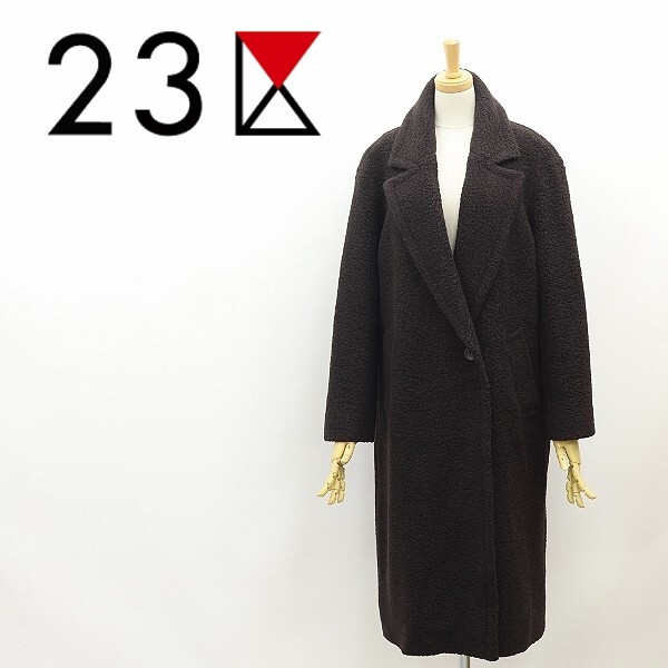 - ◆23区 ボア ウール チェスター ロング コート ダークブラウン 36