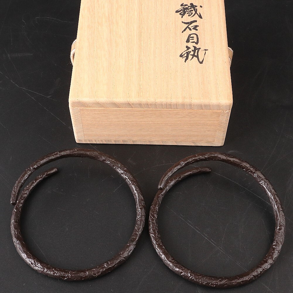 - ◆◇十四世 金谷五良三郎造 鉄石目丸釜鐶 茶道具 共箱◇◆