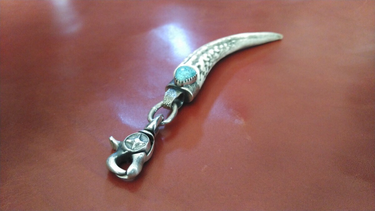 - 【1点物!】WHEEL WORKS蝦夷鹿(ジビエ)シリーズ キーホルダー シルバー ターコイズ 鹿角 天然石 アクセ ホイールワークス K-001