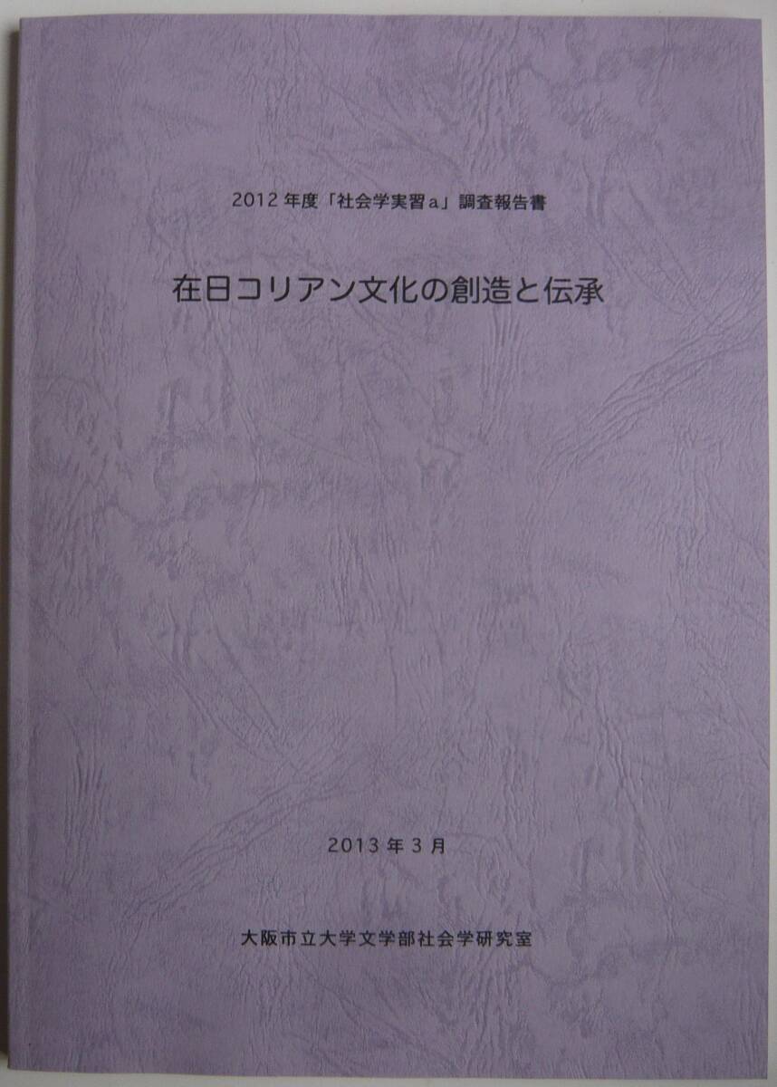 - 【入手困難本!】 ー2012年度「社会学実習a」調査報告書ー「在日コリアン文化の創造と伝承」大阪市立大学文学部社会学研究室