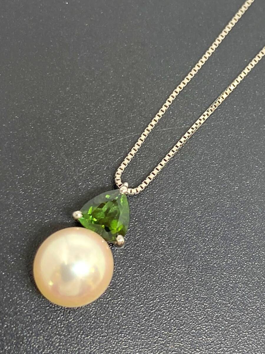 - 【即決】 PT/PT850 高品質 あこや真珠 グリーントルマリン ペンダント ネックレス 8.5mm GT:0.69ct アコヤ 本真珠 パール ジュエリー 3.9g