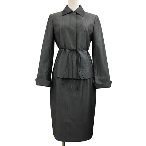 > アトリエサブ セットアップ スーツ ジャケット シングル 比翼仕立て ステンカラー 長袖 36 スカート タイト 膝丈 ウール 無地 40 グレー
