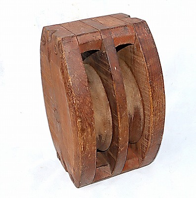 - 大きな木製滑車 時代物 未使用 保管品 置物 飾り