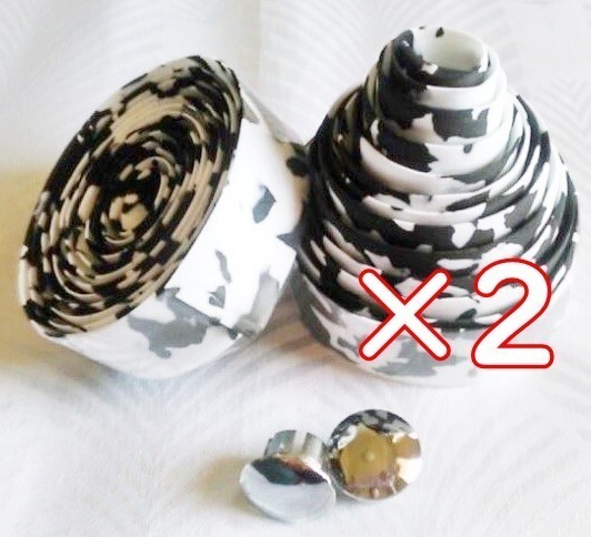 - 2セット◆自転車 バーテープエンドキャップ付 滑り止めに♪クッション素材 ハンドルテープ バイク/モノクロ YWQ1931