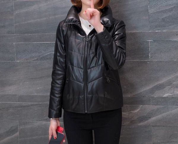 - 本革 ダウンジャケット レディース レザーコート 女性 ラム革ジャン スタンドカラー 通勤 スタイリッシュ ハーフ防寒真冬秋冬