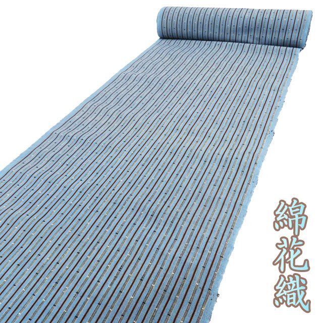 - 琉球 花織 反物 素材 未仕立て 木綿 浅縹色 多色 きもの北條 A1113-5