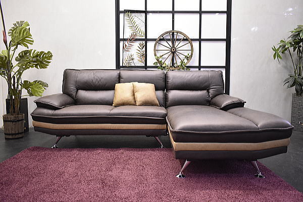 座面下部のワンポイントラインとスチール脚がモダンな印象を与えるカウチソファーです。